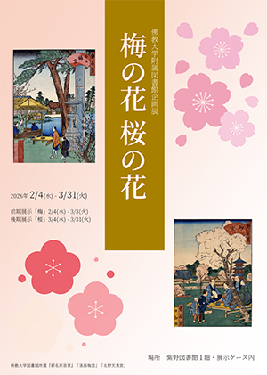 前期2月は梅の花、後期3月は桜の花の名所が紹介された資料を展示します。